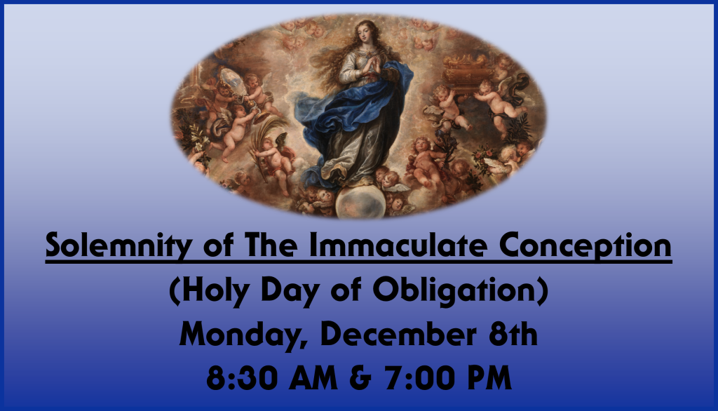 ***The last chance for Reconciliation before Christmas will be Saturday, December 20th at 9:00AM, and will continue on the hour until 12:00PM***
