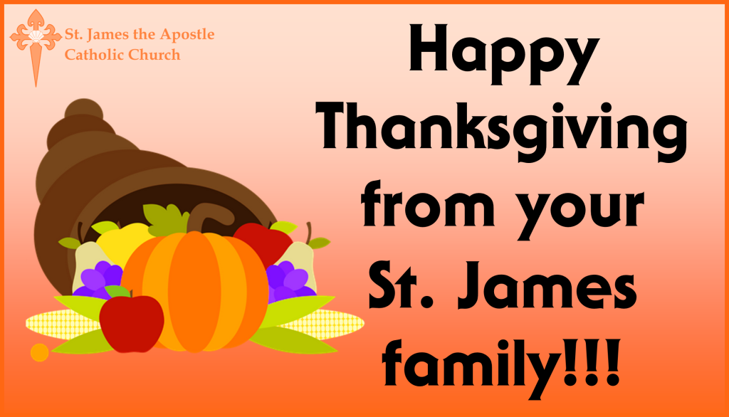 Due to the Thanksgiving holiday, the Parish Office will close at 12pm on Wednesday, Nov. 26th and will reopen on Monday December, 1st.