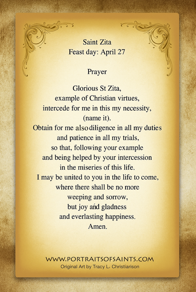St. Zita approached her duties with utmost love and service of the Lord. Her feast day is April 27th.